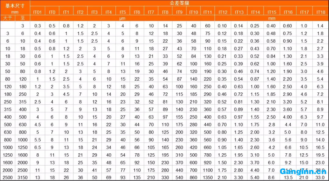 注:基礎(chǔ)規(guī)格低于毫米時(shí),無(wú)IT14至IT18