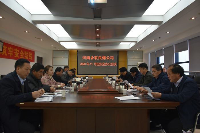 2020年11月30日,河南省永聯(lián)民爆器材股份有限公司召開了11月份安全辦公會(huì)議,公司領(lǐng)導(dǎo)班子、安委會(huì)成員、安委會(huì)辦公室成員以及宜陽(yáng)縣、光山縣、寶豐縣、內(nèi)鄉(xiāng)縣、鶴壁、固始縣等6家分公司負(fù)責(zé)人參加了會(huì)議。會(huì)議由公司副總經(jīng)理靳義國(guó)主持,公司董事長(zhǎng)、總經(jīng)理劉嵩參加會(huì)議并講話。