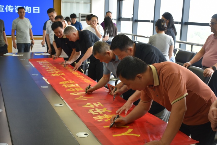 最后,圍繞本年度安全生產月主題“人人講安全、個個會應急——查找身邊安全隱患”,進行了全體人員安全承諾簽名活動。